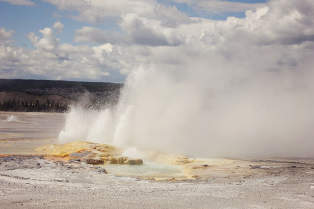 Yesterday we took a day long drive to Yellowstone. We left the house a little after 6 in the morning, and didn't get home until almost 9:00 - but we had so much fun! We actually made the loop around the entire park - and saw bears two different times! Stopped and enjoyed a few of the little board walks, and even pulled into Old Faithful within minutes of the geyser erupting! What amazing timing! That is always the highlight for the girls - as well as the ice cream cones we usually purchase there!